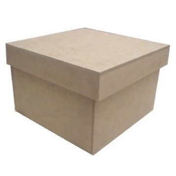 Caixa de MDF cru tipo sapato com medida externa de 8cm de comprimento 8cm de largura 8 de altura.