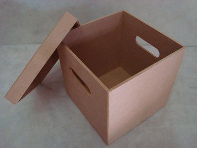 Caixa de MDF cru tipo sapato com medida externa de 26cm de comprimento 26cm de largura 26 de altura.