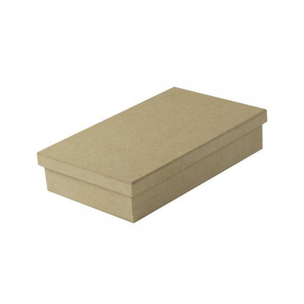 Caixa de MDF cru tipo sapato com medida externa de 25cm de comprimento 15cm de largura 5 de altura.