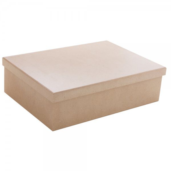 Caixa de MDF cru tipo sapato com medida externa de 35cm de comprimento 25cm de largura 10 de altura.