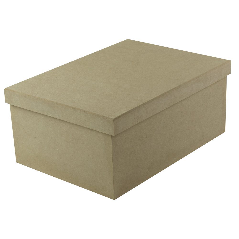 Caixa de MDF cru tipo sapato com medida externa de 35cm de comprimento 25cm de largura 15 de altura.