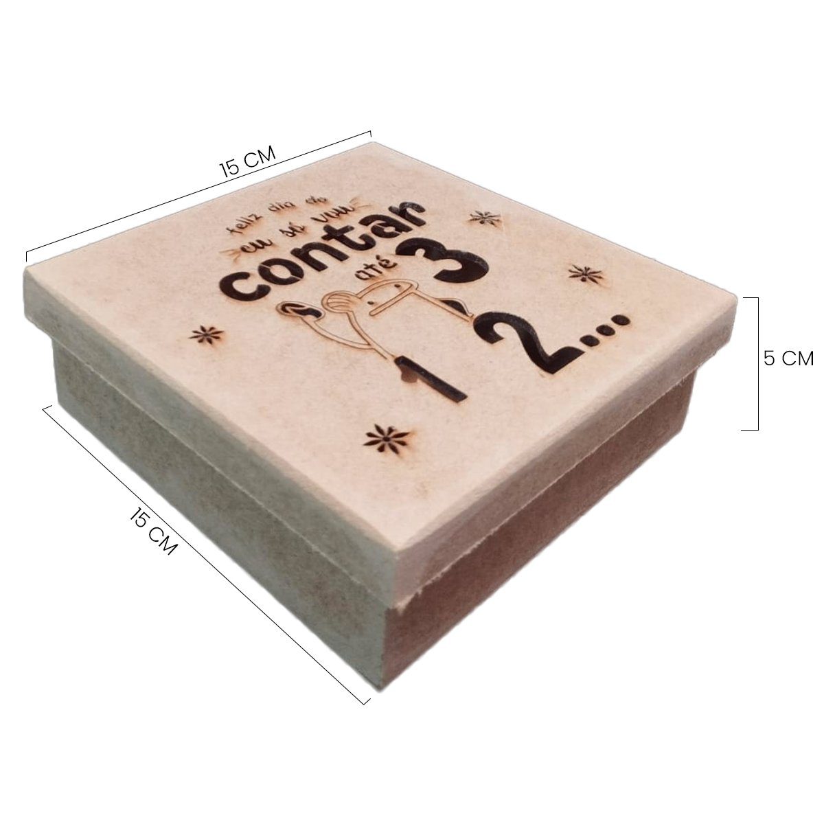 Apresentamos a encantadora Caixa de MDF em madeira crua, especialmente confeccionada com corte a laser, para ser um item prático e estiloso, com um toque especial do texto “(Bento Feliz Dia Do Eu Só Vou Contar Até 1,2,3)”. Com dimensões de 15x15x5, essa caixa possui um design exclusivo que lembra uma tampa de sapato elegante, combinando funcionalidade e charme de maneira excepcional.