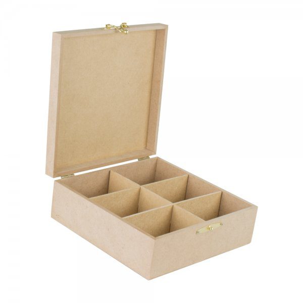 Apresentamos a incrível Caixa de MDF Organizadora com 6 Divisórias, agora disponível com medidas de 22cm de comprimento, 22cm de largura e 8cm de altura. Esta Caixa Personalizada em Madeira é a solução perfeita para quem busca uma organização prática e eficiente para uma variedade de objetos pessoais.