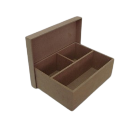 - Dimensões: 22cm de comprimento, 17cm de largura, 8cm de altura (com 3 divisórias)